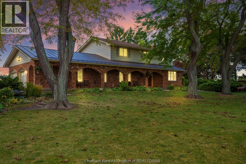 Your Family’s Country Escape — Just 10 Minutes from Chatham! Discover the perfect blend of nature, comfort, and family living on this beautiful 1.1-acre property. Wake up to peaceful river views, enjoy your morning coffee on the covered porch, and spend weekends kayaking, canoeing, or fishing right across the road. The landscaped yard is made for outdoor fun—with mature trees, a tranquil fishpond, and plenty of space for kids and pets to play (plus invisible fencing for extra peace of mind). A 12’ x 16’ shed with a workbench provides storage for tools, bikes, or outdoor toys, and there’s additional room for another shed, a pool, or a children’s play area. Inside, the bright kitchen with granite countertops opens to the backyard, perfect for family meals and gatherings. The main level offers flexibility for everyday living, featuring a versatile room ideal for sitting, computer use, or extra dining space, along with a convenient office or playroom, laundry, and 2-piece bath. Upstairs, the spacious primary suite offers a private ensuite, with three more bedrooms and a full bath for everyone to enjoy. Updates include windows, furnace/C/A tankless hot water (2014), and lower metal roof (2021) to name a few! Come and see your lifestyle awaits with no rear neighbours! Please allow 24 hours notice for showings. (id:4555)