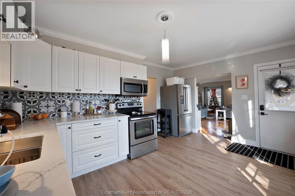 Welcome to 19120 Hill Road, Morpeth — a truly charming 1¾-storey home that has been lovingly updated from top to bottom and is ready for you to move right in. This cute and cozy 3-bedroom, 1.5-bathroom property perfectly blends character with modern upgrades, offering peace of mind and everyday comfort. The home features a newer drilled well and a thoughtfully insulated crawl space with spray foam insulation, housing the well tank, filtration system, and furnace. Major mechanical updates include a newer Square D 100-amp copper electrical panel and a newer hot water tank. The convenience continues with a main-floor laundry room, ideal for busy households. Inside, you’ll love the stylish updates throughout. The kitchen boasts new vinyl flooring, a newer backsplash, and quartz countertops, while both the kitchen and bathrooms have been tastefully renovated within the last five years. Refinished hardwood floors add warmth and character, complemented by vinyl windows that enhance efficiency and natural light. Outdoor living is just as impressive. Relax on the newly replaced covered front porch or entertain on the new interlocking brick patio overlooking the fully fenced yard, completed three years ago with elegant iron gate. This property offers both beauty and functionality in every detail. Located in the welcoming community of Morpeth, residents enjoy small-town charm with big-hearted amenities. Fun fact: Morpeth is home to a well-loved community centre that hosts local events and activities, and nature lovers will appreciate nearby Greenview, perfect for enjoying the outdoors. Plus, you’re just a short drive to Blenheim and Ridgetown, giving you easy access to shopping, dining, schools, and healthcare. This home has truly been touched from top to bottom — and it does not disappoint. (id:4555)