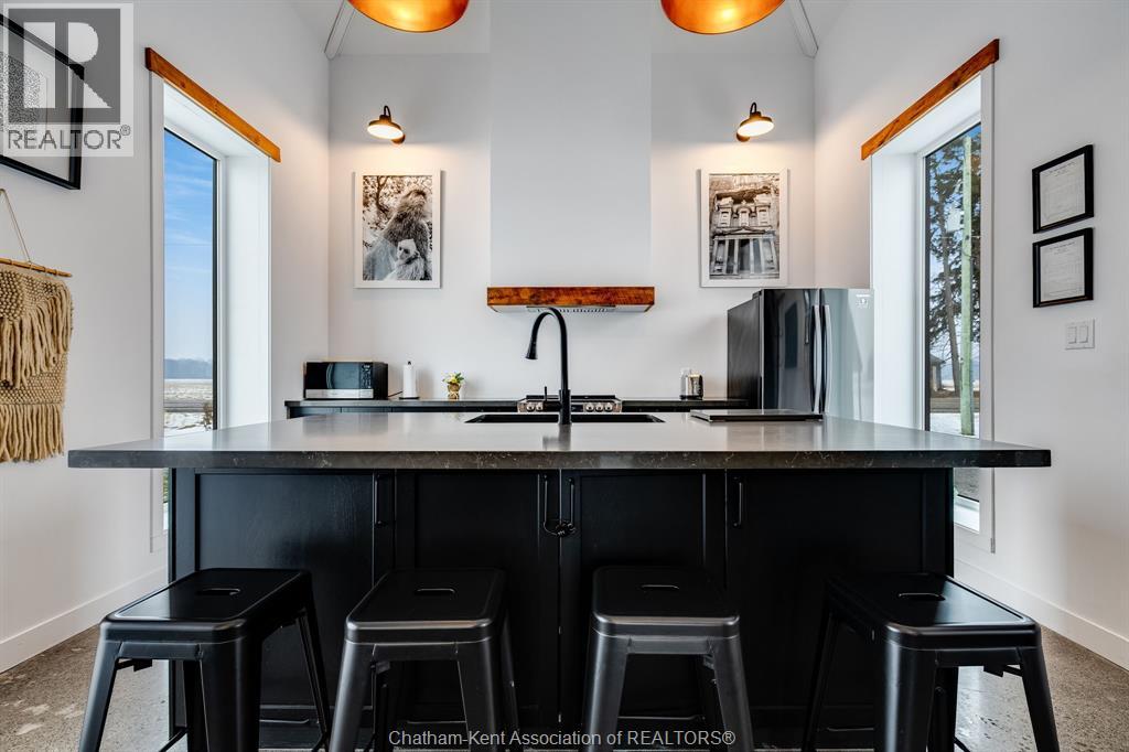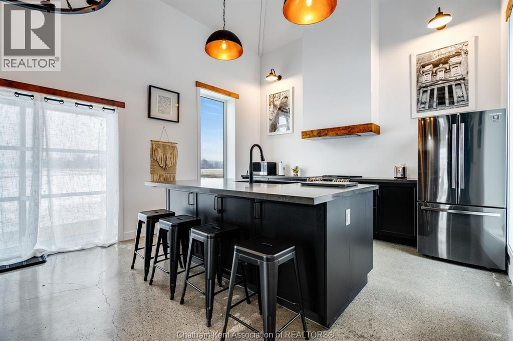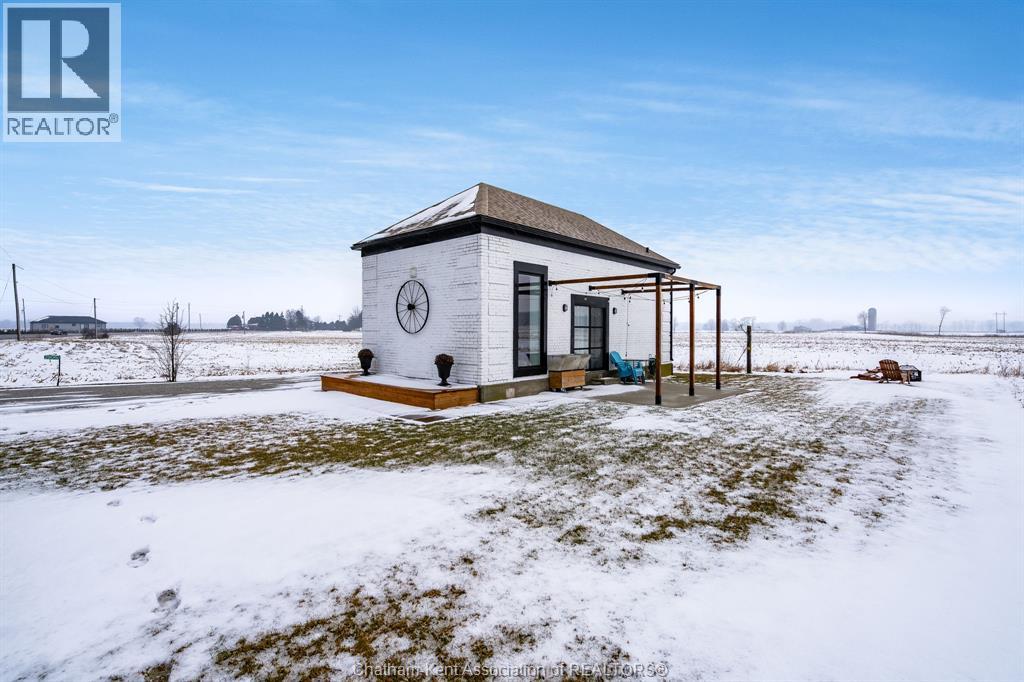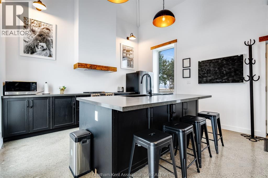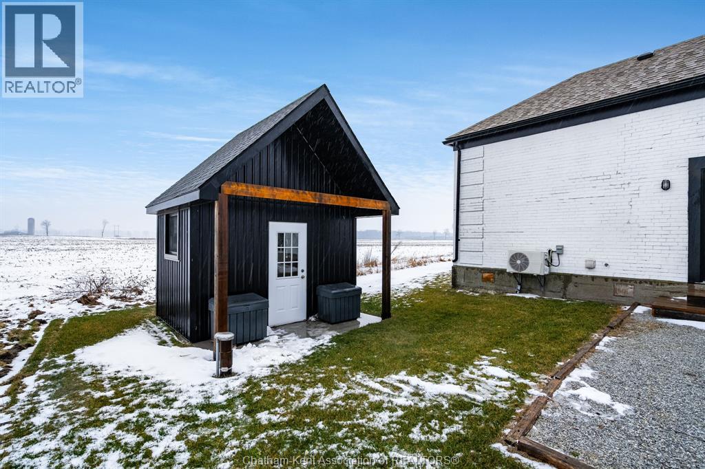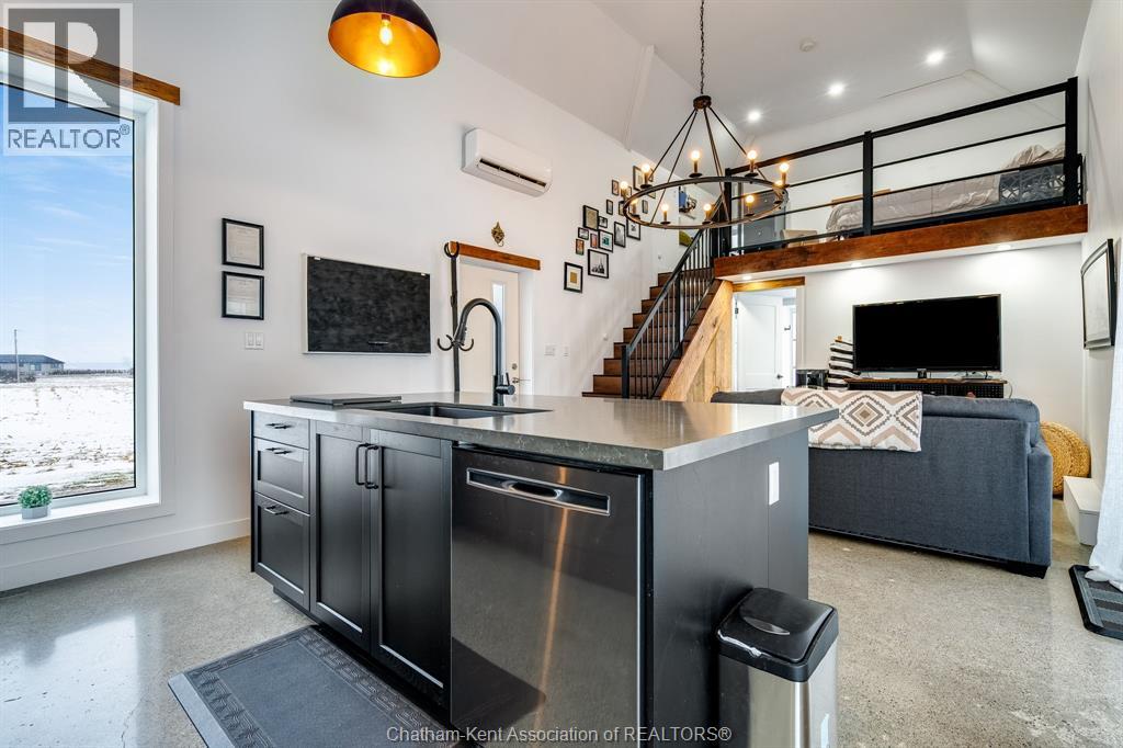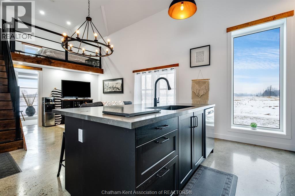 Surrounded by late harvest fields, this one of kind converted home offers the perfect package for someone looking for a simple and serene lifestyle. From the moment you step inside enjoy soaring 14'+ ceilings and a completely open design. The bright interior features a brand new full kitchen complete with a large island and seating, ideal for casual dining or entertaining.. Large full bath with walk-in shower w/ double vanity, while the upper loft serves as the primary bedroom. Completely converted and renovated in 2017 w/ new Well, Septic (2021) Roof (2020) Shed (2021) - This cute home is move in ready! Perfect place for first time buyers, someone looking for a minimalist life or a unique short term rental! Call Today! (id:4555)