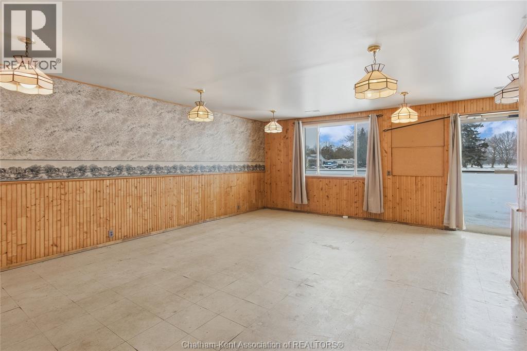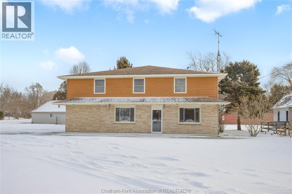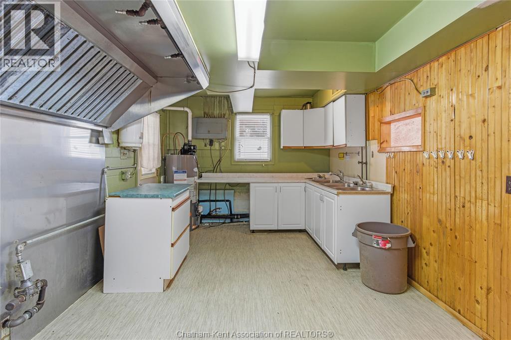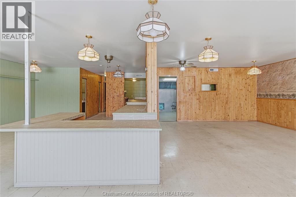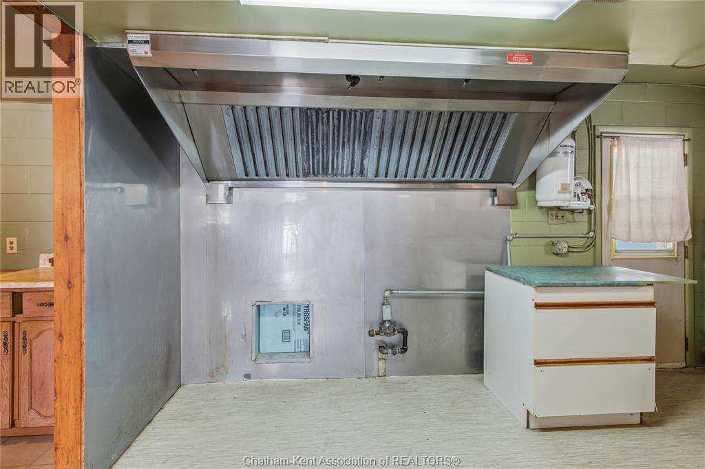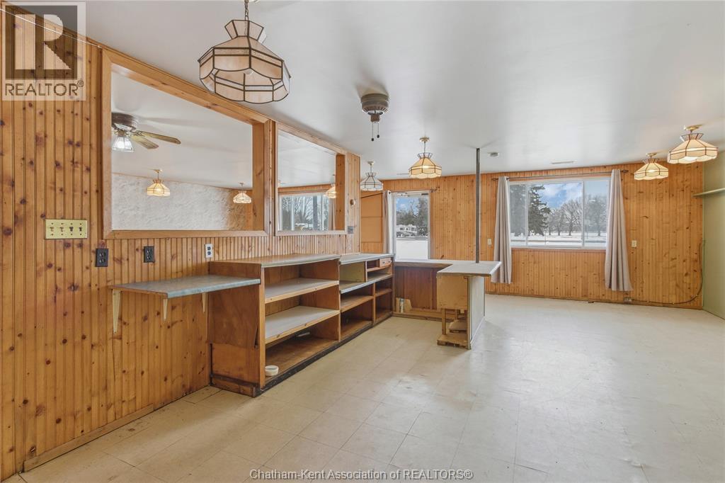 Versatile live/work/investment opportunity in the heart of Dealtown, ideally located on Talbot Trail just minutes from Lake Erie and within an easy commute to Chatham. This high-visibility corner lot offers excellent exposure along with ample on-site parking. The expansive main floor commercial space, previously operated as a restaurant and variety store, features a functional layout with generous square footage, two 2-piece bathrooms, a commercial range hood, and the flexibility to re-establish a food service operation or adapt the space for a wide range of potential uses, subject to approvals. Upstairs, the bright and well-thought-out residential unit offers two bedrooms and two full bathrooms, including a spacious primary suite with walk-in closet and private ensuite, along with in-unit laundry, a warm wood kitchen, beautiful natural wood finishes throughout, a cozy gas fireplace, and a separate bar room ideal for entertaining. Enjoy stunning Lake Erie views from the enclosed rear porch, providing the perfect setting for morning coffee or evening relaxation. A heated, detached 2.5-car garage adds further value with options for additional parking, storage, or workshop space, making this a rare and flexible opportunity for entrepreneurs, investors, or those seeking a unique mixed-use property. Conveniently located near the Lake Erie waterfront and within easy reach of Chatham, the property may also be purchased on its own or together with the neighbouring residential property (MLS® #26001429). (id:4555)