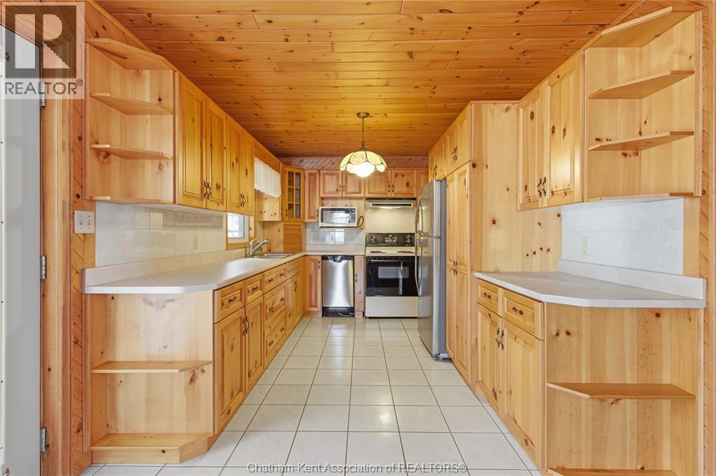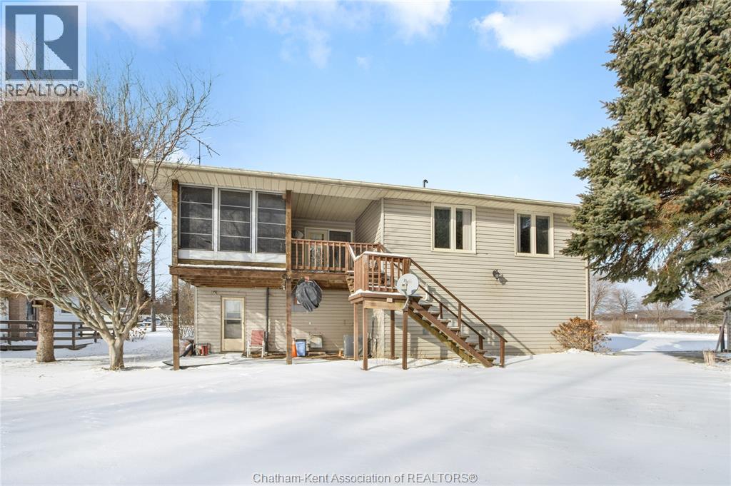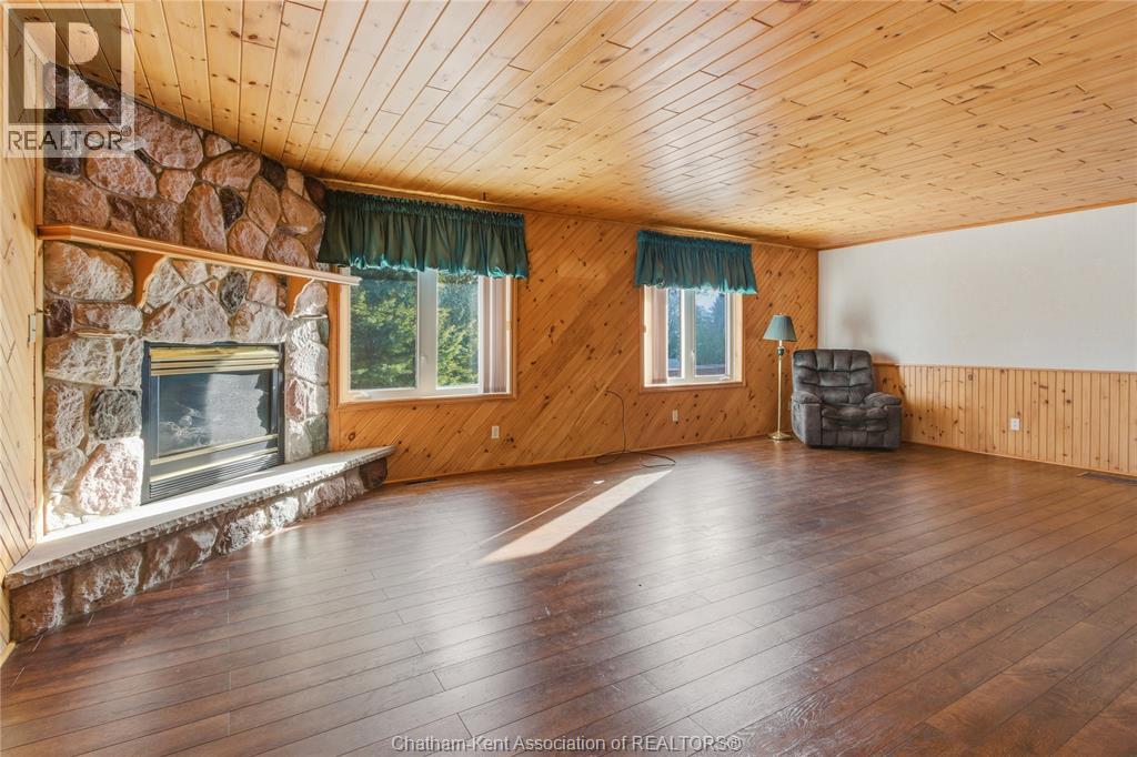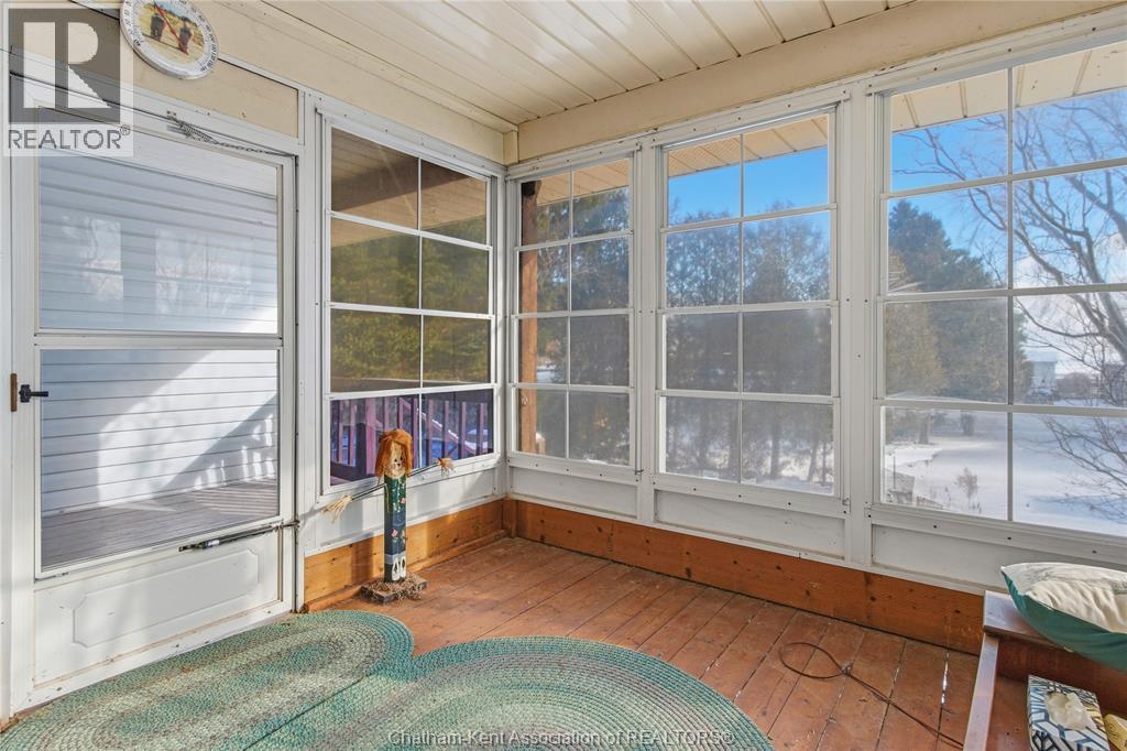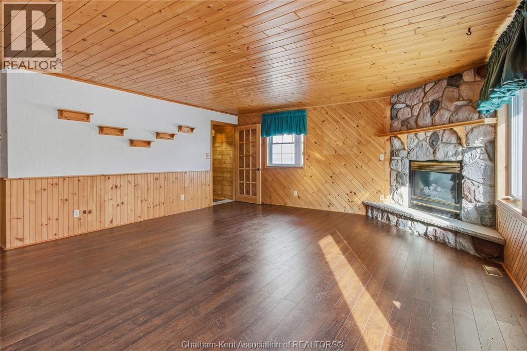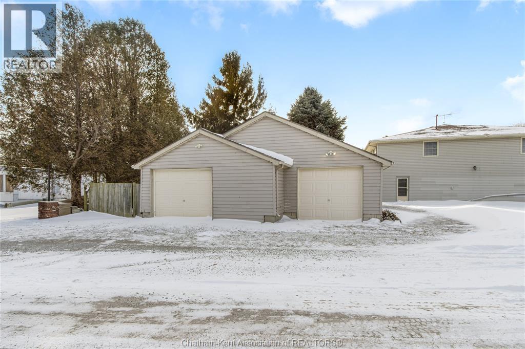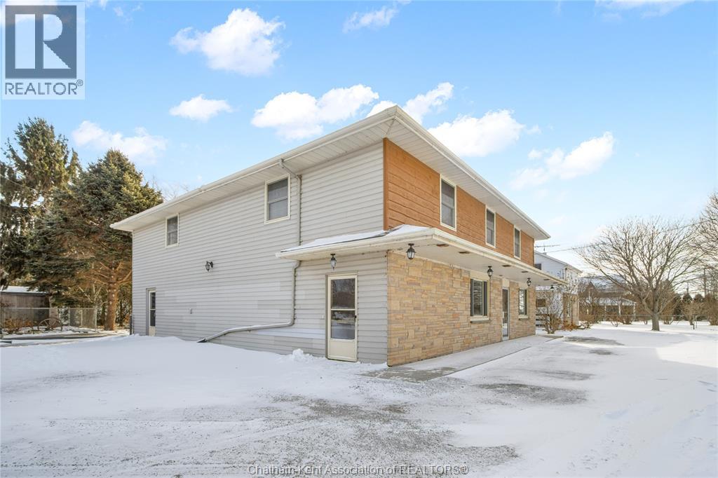 Versatile live/work/investment opportunity in the heart of Dealtown, ideally located on Talbot Trail just minutes from Lake Erie and within an easy commute to Chatham. This high-visibility corner lot offers excellent exposure along with ample on-site parking. The expansive main floor commercial space, previously operated as a restaurant and variety store, features a functional layout with generous square footage, two 2-piece bathrooms, a commercial range hood, and the flexibility to re-establish a food service operation or adapt the space for a wide range of potential uses, subject to approvals. Upstairs, the bright and well-thought-out residential unit offers two bedrooms and two full bathrooms, including a spacious primary suite with walk-in closet and private ensuite, along with in-unit laundry, a warm wood kitchen, beautiful natural wood finishes throughout, a cozy gas fireplace, and a separate bar room ideal for entertaining. Enjoy stunning Lake Erie views from the enclosed rear porch, providing the perfect setting for morning coffee or evening relaxation. A heated, detached 2.5-car garage adds further value with options for additional parking, storage, or workshop space, making this a rare and flexible opportunity for entrepreneurs, investors, or those seeking a unique mixed-use property. Conveniently located near the Lake Erie waterfront and within easy reach of Chatham, the property may also be purchased on its own or together with the neighbouring residential property (MLS® #26001429). (id:4555)