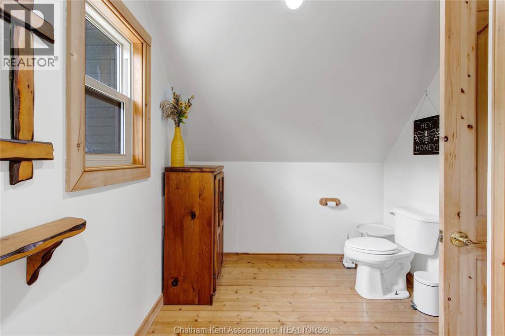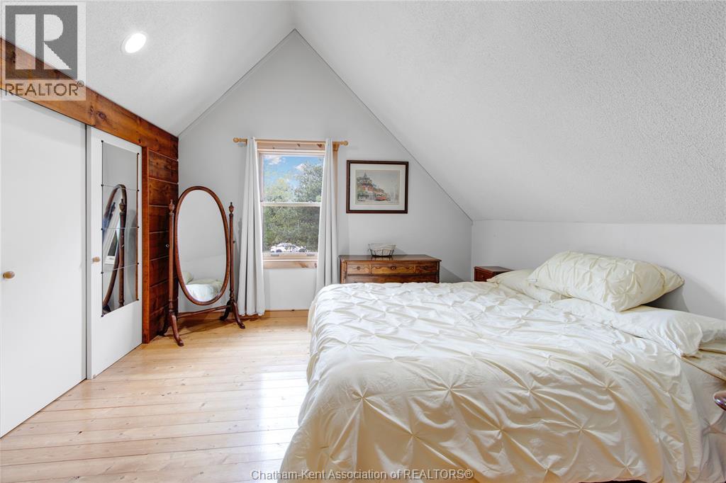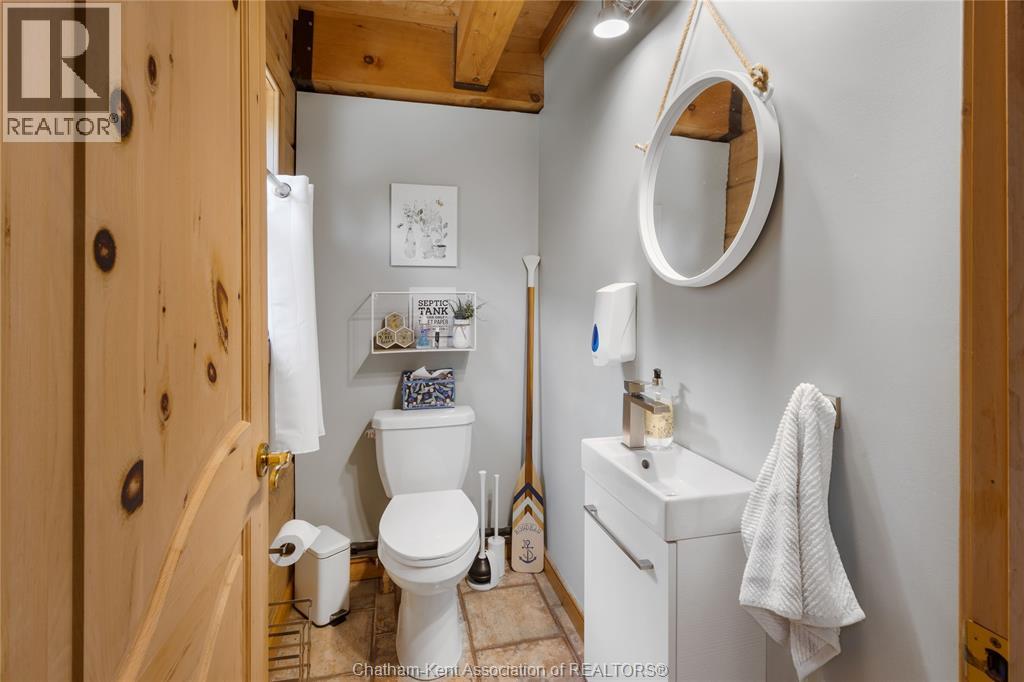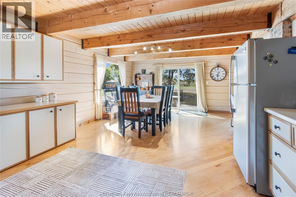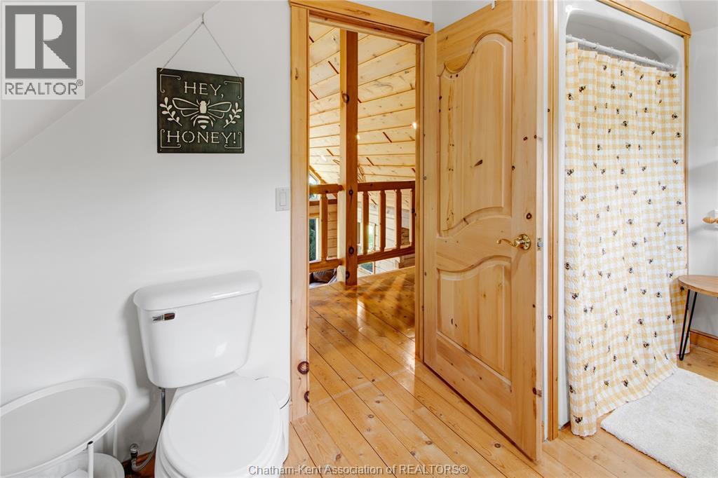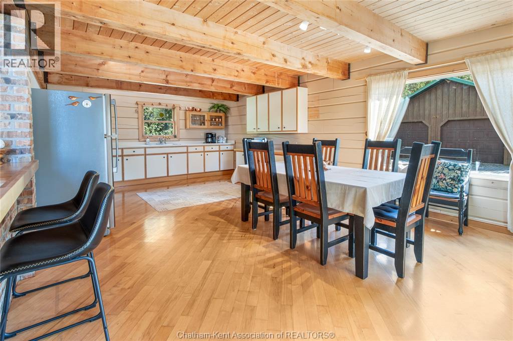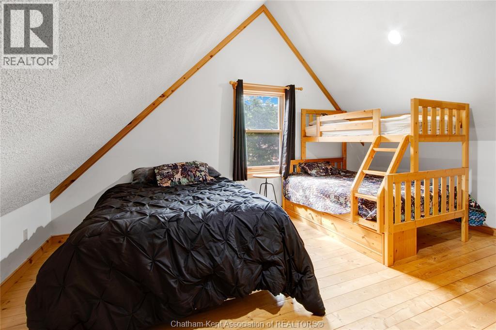 Embrace this impressive Confederation Log Home tucked away in a private retreat offering approximately 500 ft of canal waterfront and sitting on an impressive 2-acre lot. Inside this unique home, you’re met with an exceptional layout featuring a large great room with cathedral ceilings and an open balcony overlooking the space below. You’ll notice the rich wood tones, exposed beams, and detailed joinery showcasing the expert craftsmanship throughout. The massive eat-in kitchen provides plenty of room for large gatherings, dinners, and entertaining, with patio door access to the outdoor area where you can relax and take in beautiful canal views, wildlife and breathtaking sunsets! Enjoy the convenience of main floor living with a spacious primary bedroom offering a roughed-in ensuite with a walk-in closet area. A large foyer, a 2pc bath and laundry room complete the main floor. Upstairs, you’ll find two generous bedrooms and a 4pc bathroom. Outside, there’s room to roam across three parcels of land with a new wood and steel dock! This place really sets the tone for relaxation and enjoying life on the water. With access to Rondeau Bay, you can swim, boat, and fish in world-class waters right from your backyard. The heated oversized double detached garage/shop provides ample space for all your toys, a workshop, or future projects while you enjoy this peaceful and private setting. Services include municipal water, natural gas, septic and well water for your gardening or other uses! This property is truly one-of-a-kind!! Don’t miss your chance to make it yours. Call today for more information or to schedule your private viewing! (id:4555)