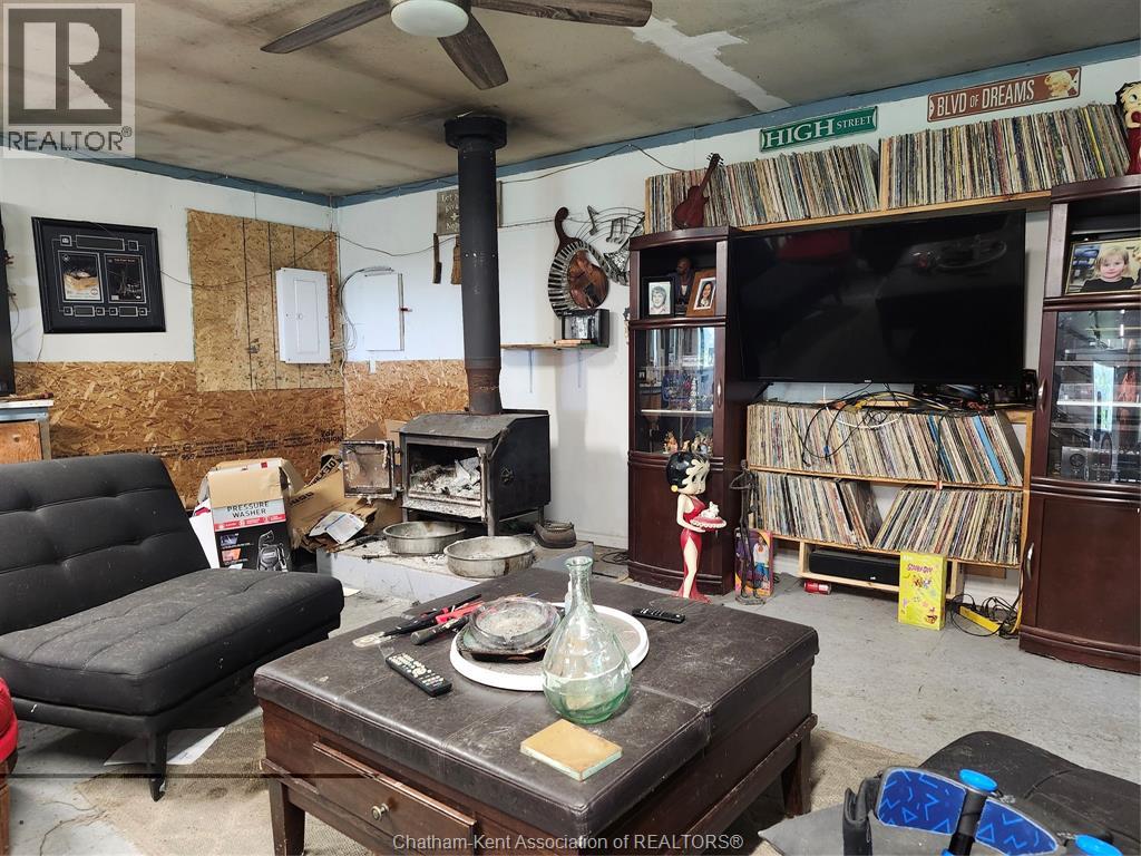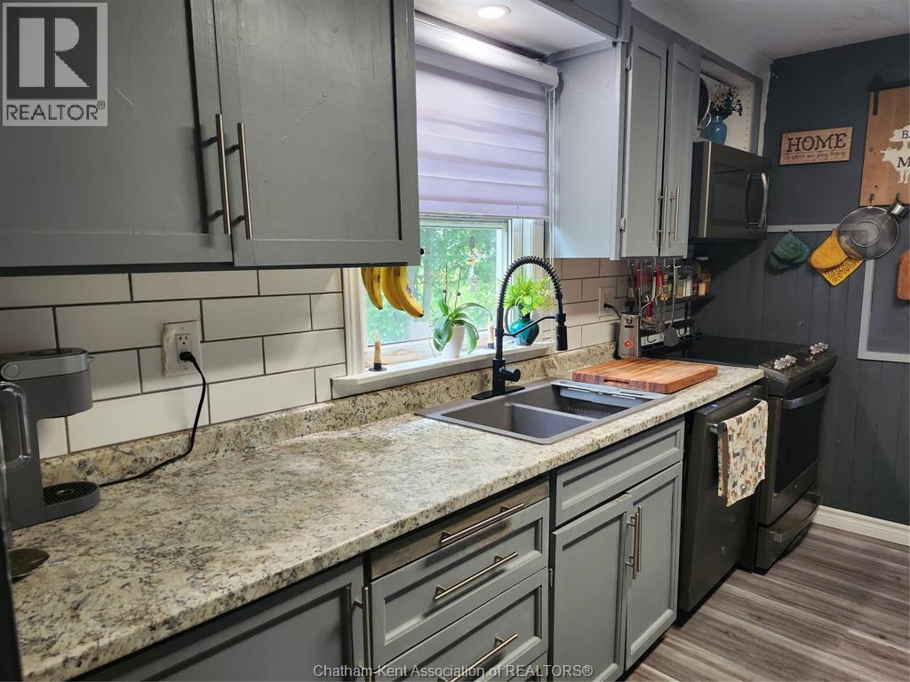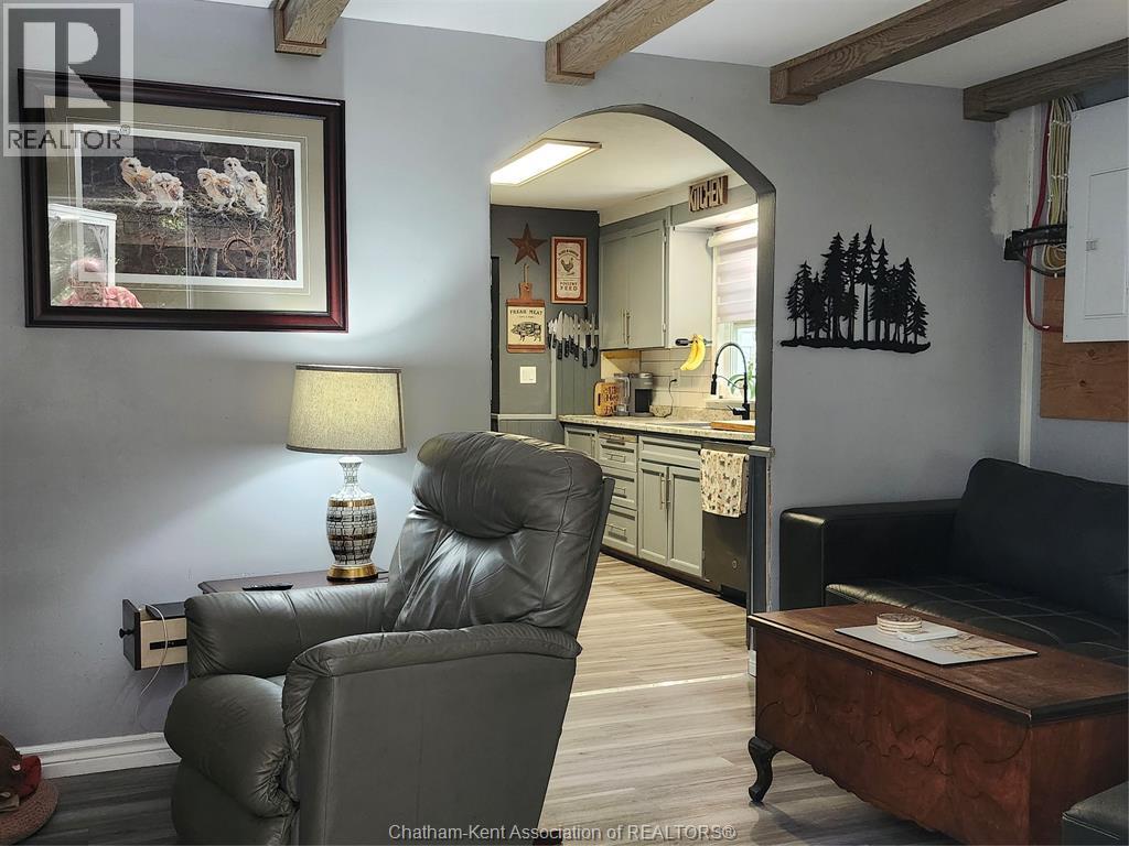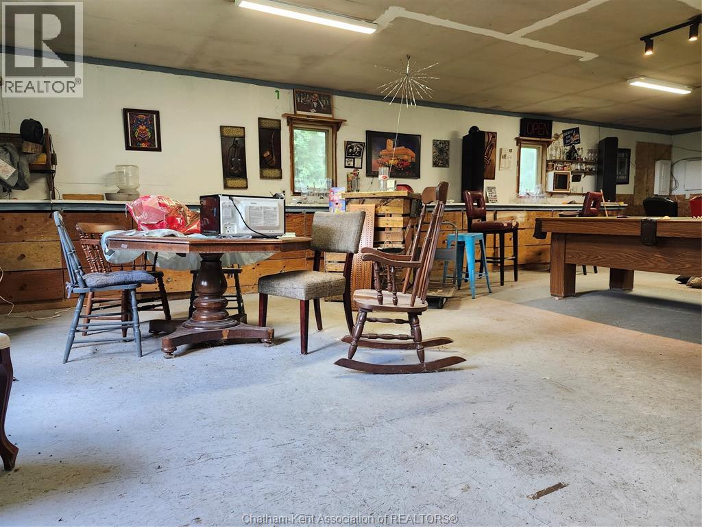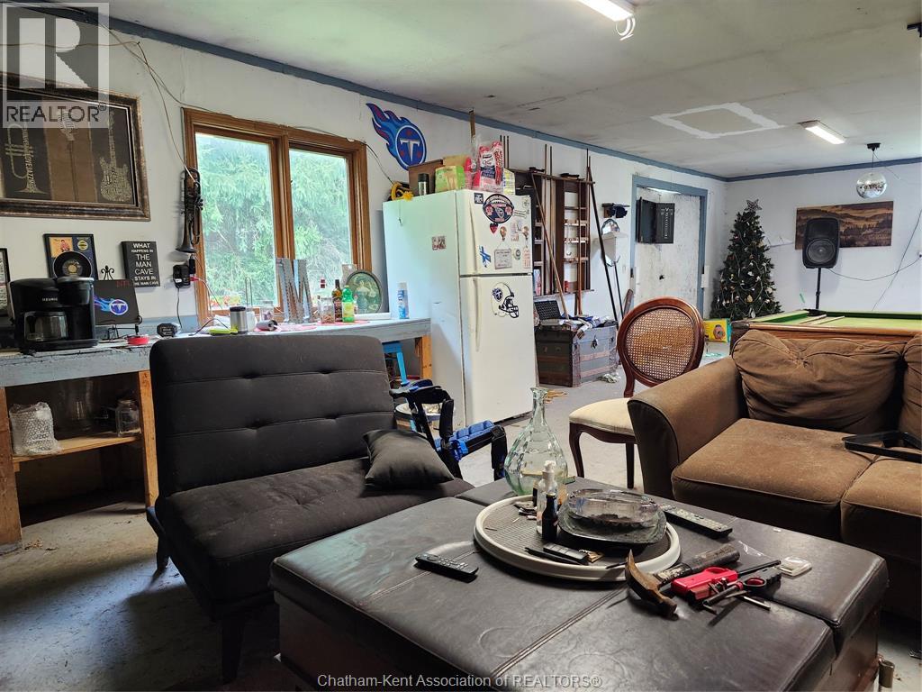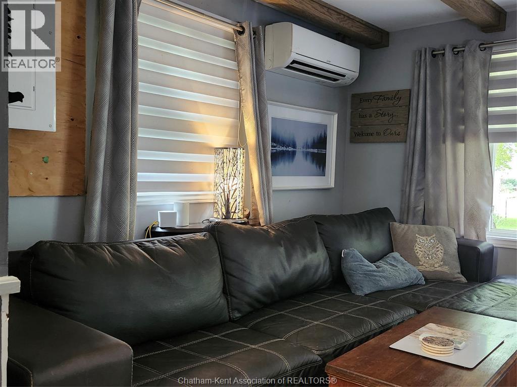 Looking for peace and quiet? Look no further!! This completed renovated 2 bedroom bungalow is situated on a 1/2+ acre lot. It features a large master bedroom with a large to dream for walk in closet. The building out back is 60' x 25' and is ideal for entertaining. If it gets cold you can warm yourself by the wood stove while playing pool or darts(both included). Looking to sit under the stars? There is lots of room for that with a firepit already set up for you. This takes you to the back part of the property complete with a tiny home installed in 2022 . There is electricity to both of these buildings. Upgrades include the roof on both the house and the back building, plumbing and electrical all updated in 2020, ductless heating/a/c 2020, 200 amp , new flooring throughout and bathroom totally renovated. Pump house pump and accessories have all been replaced in 2026. 7 minutes from Thamesville, 25 minutes to Chatham. Central to Ridgetown, Wallaceburg and Dresden. Listing agent is also the owner. (id:4555)