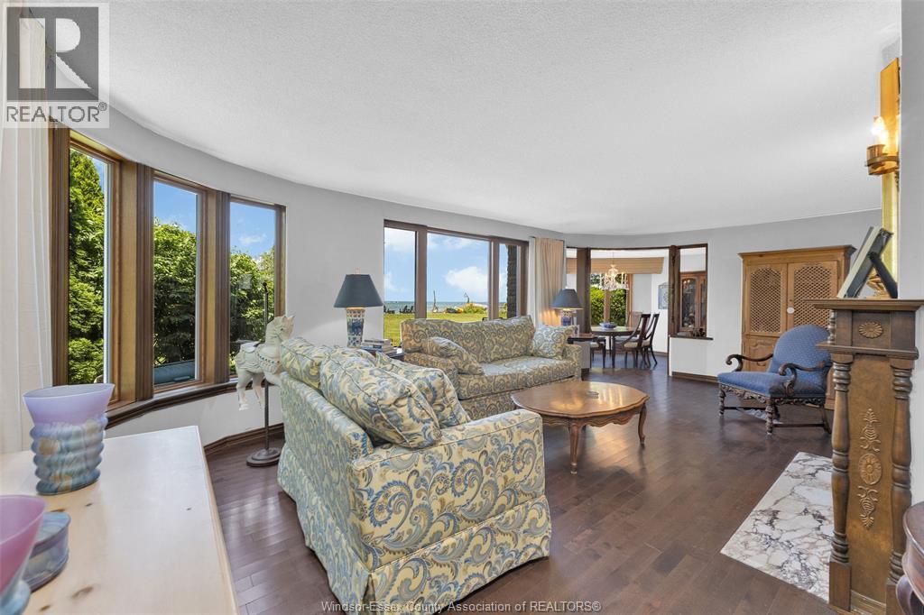 Breathing taking Waterfront views and lovely waterfront sunsets await you in this tranquil setting in east Riverside. This beautiful 3 bedroom one and a half bath 2 story home is nestled into this 461 ft deep lot in the perfect place to give you peace and quiet and incredible views of Lake St. Clair. This home opens up to a friendly foyer with the 2 pc bath, to your right you see traditional styled kitchen, straight ahead you will find the lovely formal living room with the wow views and connected to the dining room with more panoramic water views, then off to the cozy family room with gas fireplace, main floor laundry. Upstairs you will find a very large primary bedroom with more stunning waterfront views 2 more bedrooms and a cool retro 4 pc bathroom. Updates over the years approx. central air 2017, combo heating/hot water boiler 2022, main floor windows and outside doors and most upstairs windows, concrete breakwall 2005. Concrete crawl space. (id:4555)