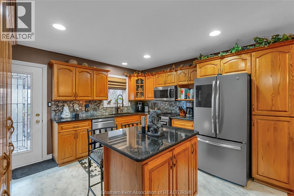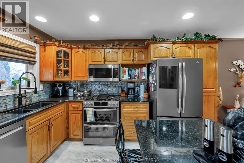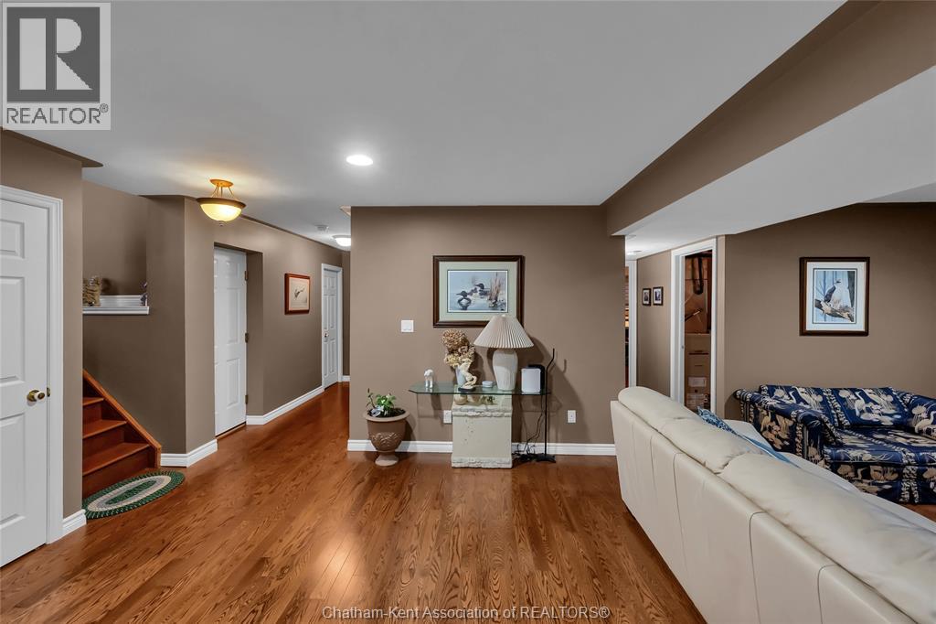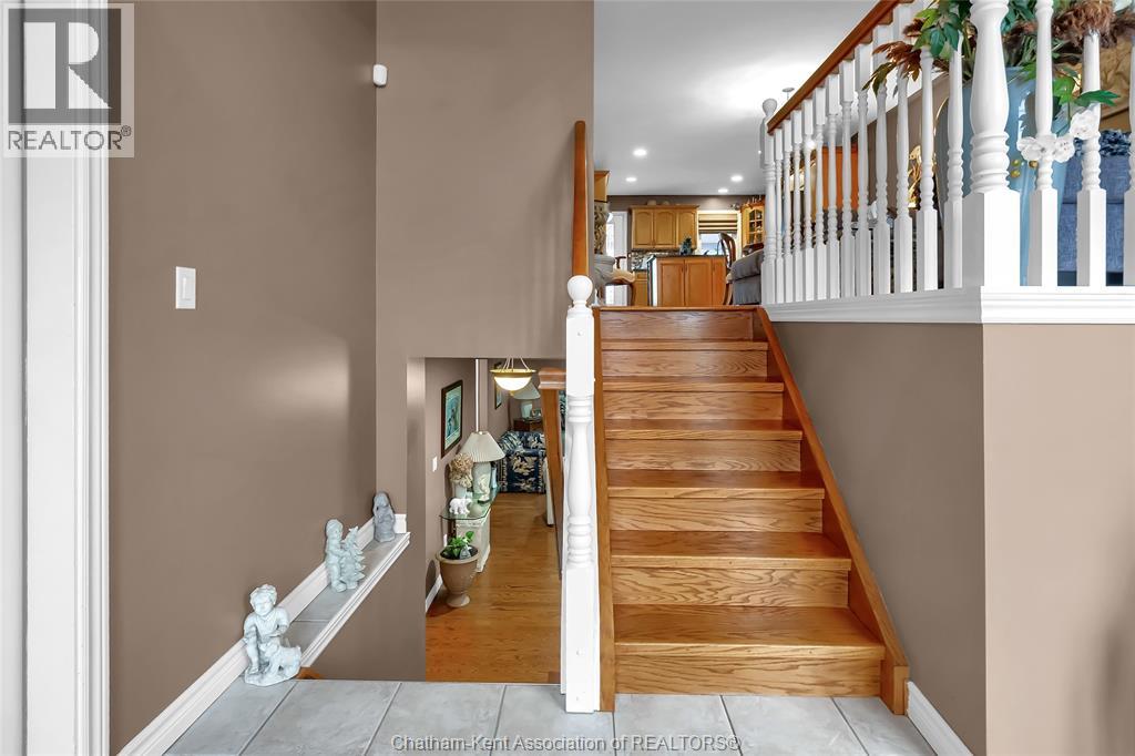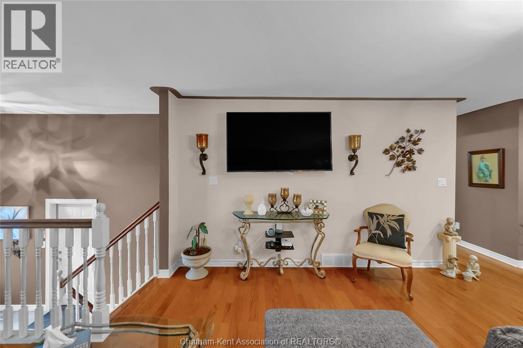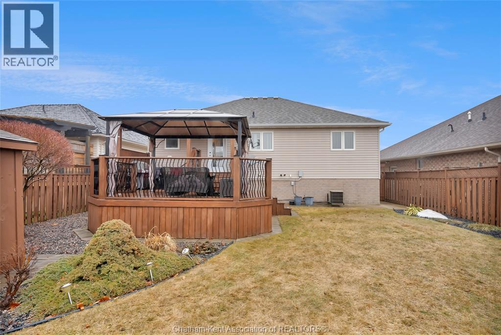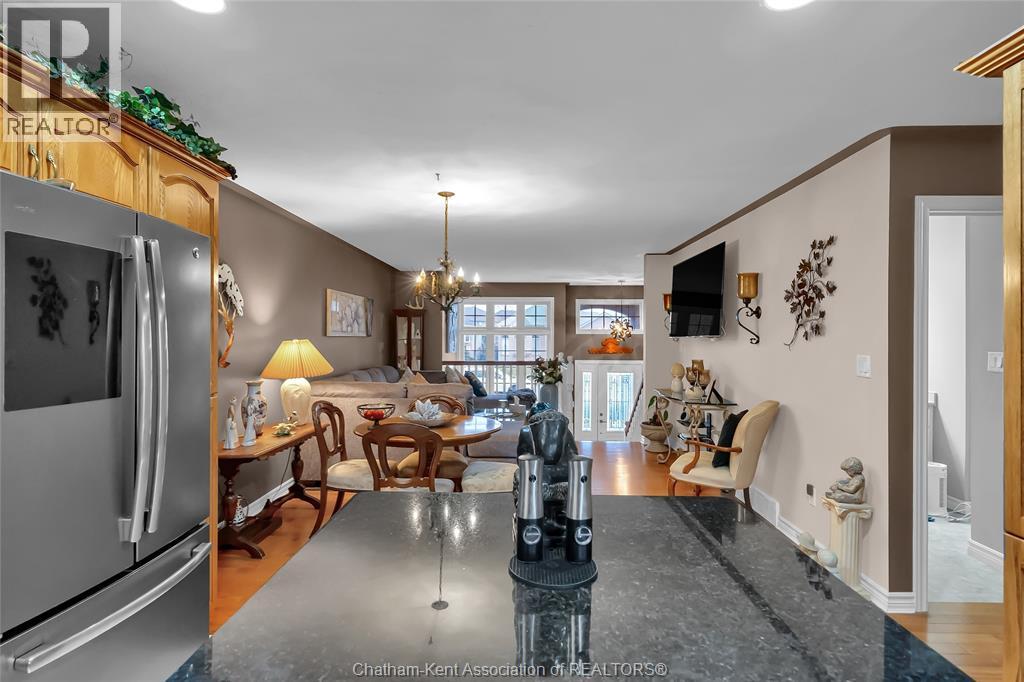 Welcome to this quality-built raised ranch in the highly sought-after Prestancia subdivision on Chatham’s desirable north side. Perfectly situated along the greenbelt and walking path, this home offers the rare advantage of no rear neighbours and exceptional privacy. Step inside to a bright, inviting foyer filled with natural light. The main level features rich hardwood flooring throughout the living and dining areas, creating a warm and timeless feel. The kitchen is both stylish and functional, offering quality cabinetry, sleek black countertops, and updated appliances that make everyday living and entertaining effortless. The spacious primary bedroom provides a comfortable retreat, complete with its own private ensuite. Two additional bedrooms and a full bathroom complete the main floor, offering flexibility for family, guests, or a home office. The fully finished lower level is designed for relaxing and gathering. The expansive family room is the perfect spot for movie nights or watching the big game. You will also find a generously sized fourth bedroom that could easily function as an office, gym, or additional storage space, along with another full bathroom and a dedicated laundry room for added convenience. The heated double car garage is ideal for hobbyists or year-round comfort and includes direct access to the lower level. Outside, the multi-tiered deck creates a fantastic setting for summer entertaining while enjoying the privacy and peaceful views of the greenbelt behind. This is a well-built home in a prime location that truly checks all the boxes. Book your private showing today! (id:4555)