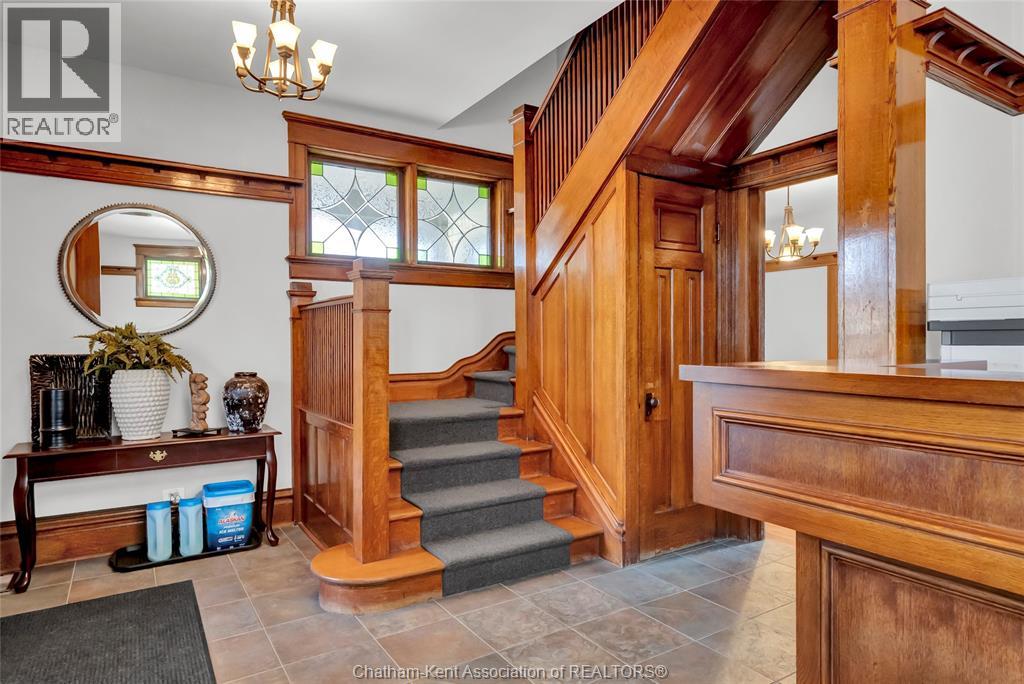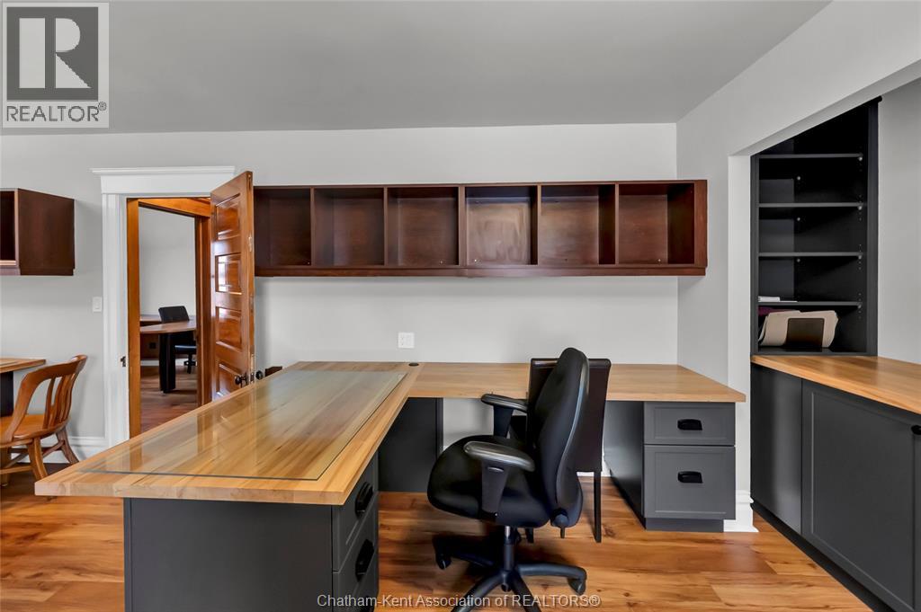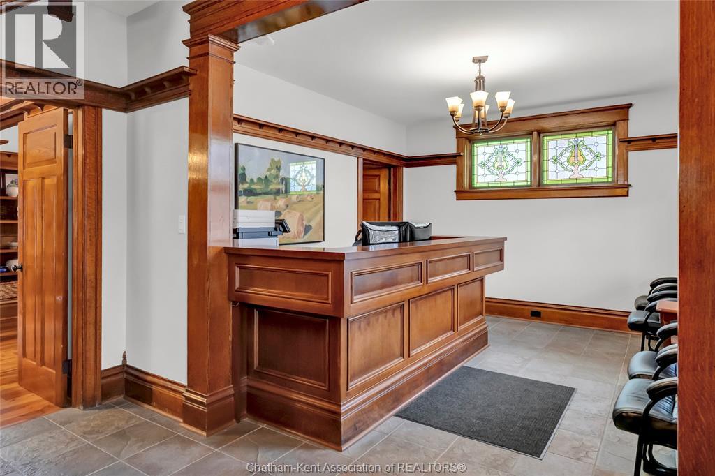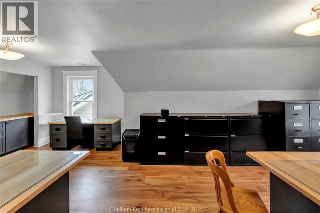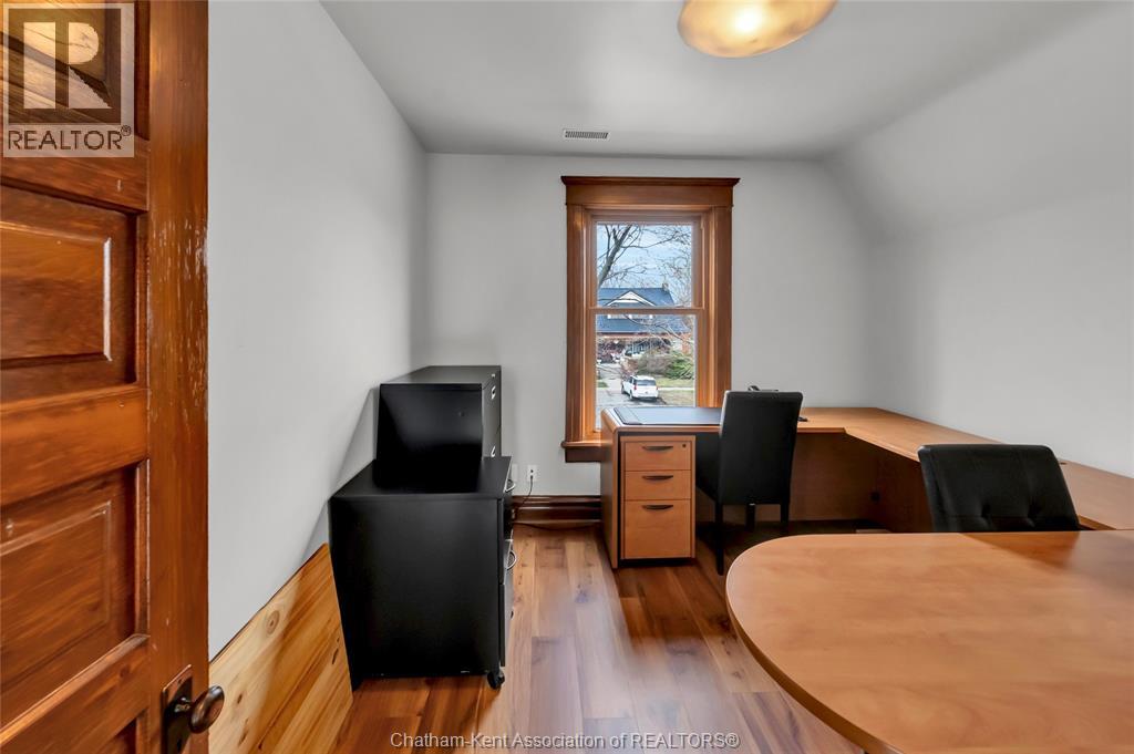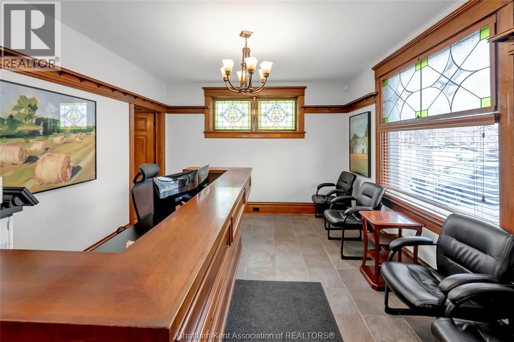 Turn the key on your next office. This office is a functional conversion of a gambrel roofed craftsman style home, retaining all of the charm with the quarter-sawn oak millwork and stained glass details. The office is centrally located with great visibility at the entrance to historic Victoria Ave. Convenient drive up parking in the front of the building has been upgraded with extensive concrete work and road entrance widening. The main floor of the office is adapted for client reception with custom front desk and waiting area and foyer. Beyond reception is a client meeting office and boardroom, which retains the original fireplace ornamentation and millwork. The main level has a customer bathroom, kitchenette and basement access. Upstairs is serviced by two staircases and houses two private offices and a third multi-workspace office with three custom built-in work stations and additional cabinetry. Additional employee bathroom on the second level. The basement is functional storage space. Upgraded electrical panel is one of countless updates to this property. Secure fenced perimeter with low maintenance exterior. No expense spared on this flawless execution of a professional office with character and charm. (id:4555)